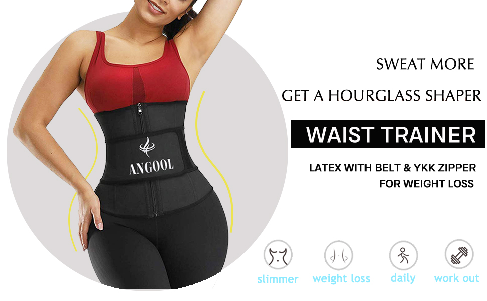 Amazon Com Angool Latex Sweat Waist Trainer For Weight Loss With Ykk Zipper Women Corset Trimmer Slimmer Belt Body Shaper Sports Outdoors